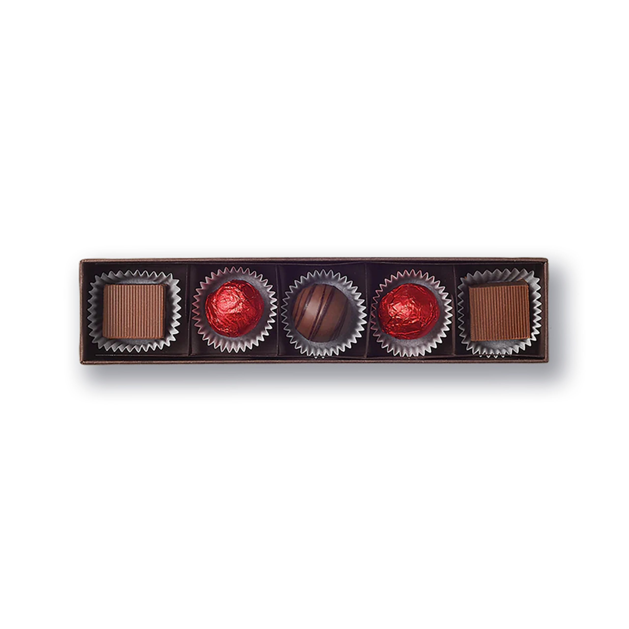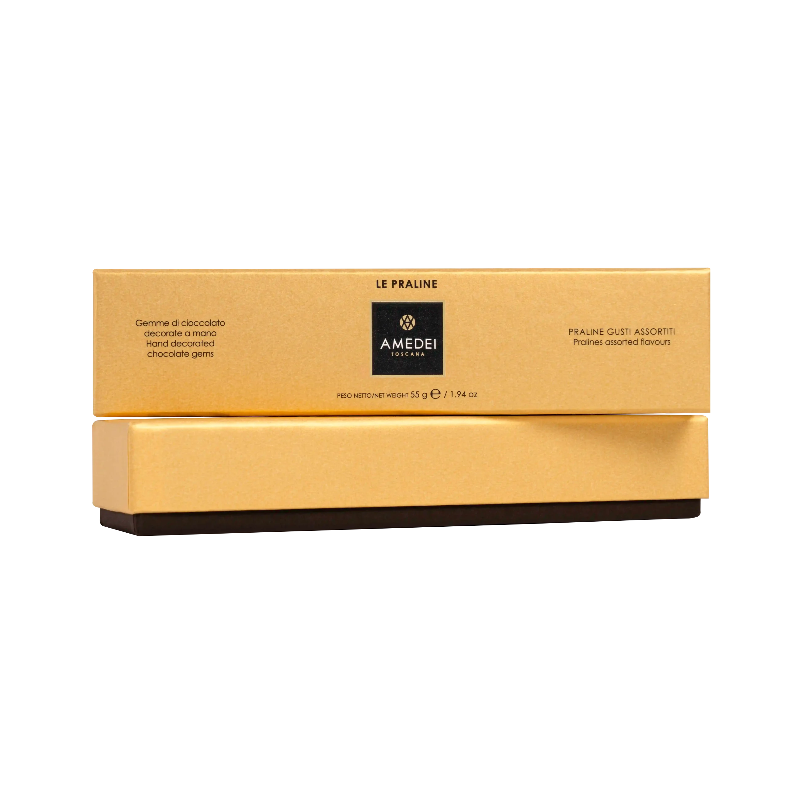 Contenuto della scatola | 1x Coccole di cioccolato al latte e caffè, 1x Santini Gold, 2x Le Praline Amedei |